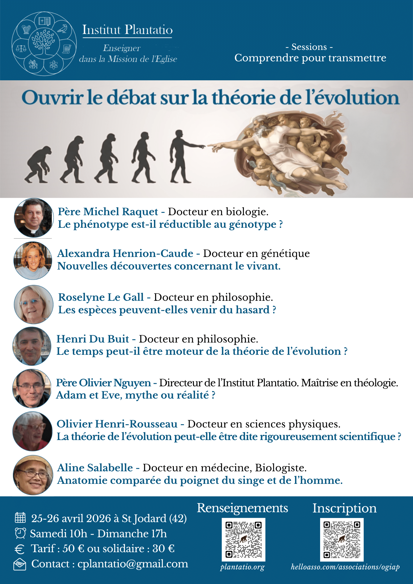 Ce colloque est à destination particulièrement de personnes désireuses d’obtenir des ressources philosophiques, théologiques et scientifiques sur ce sujet. Il rassemble d’une manière exceptionnelle des universitaires à la fois spécialistes du sujet mais aussi capables de l’aborder d’une manière transdisciplinaire. Il est particulièrement destiné à tout type de professeur sachant que la compréhension du statut des espèces entraine une vision sur l’homme et sur l’éthique. Il a aussi une valeur particulière pour les professeurs de biologie.  Il est aussi ouvert à ceux qui ont une responsabilité dans la catéchèse.